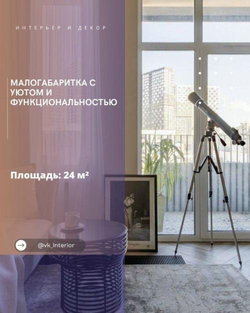 На 24 квадратах дизайнеру удалось разместить всё необходимое. Спальню выделили нишей, а кухня, хоть и проходная, стала удобным центром квартиры. Рациональная планировка и минимализм сделали пространство лёгким и гармоничным. Это пример того, как даже маленькая площадь может стать комфортной для жизни.